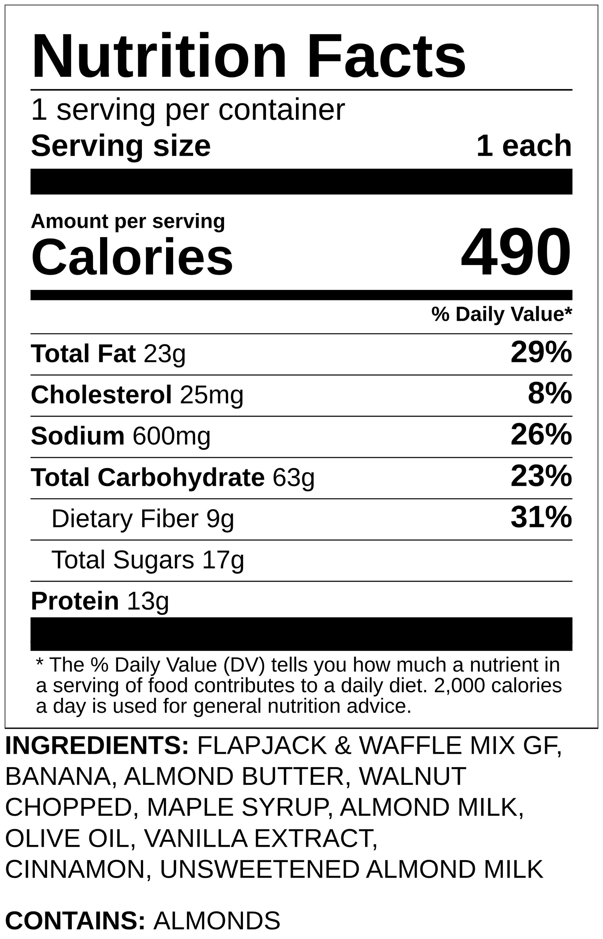 Protein-packed banana nut pancakes finished with a sweet maple almond butter drizzle.