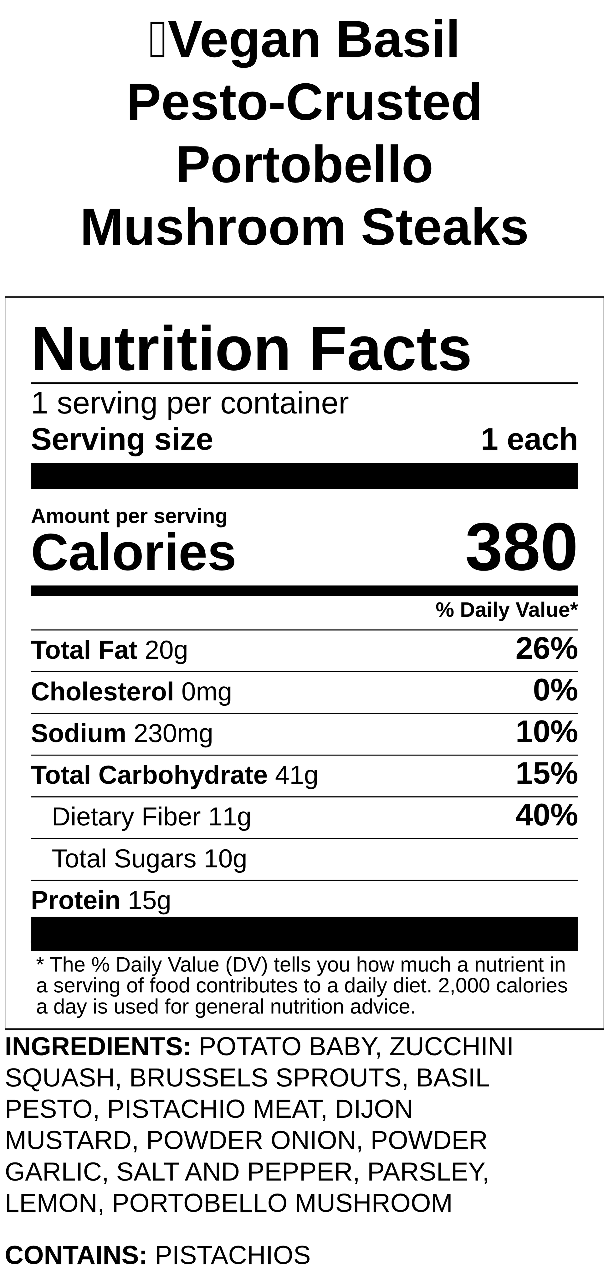 Vegan: Basil pesto mushrooms with potatoes and mixed vegetables.