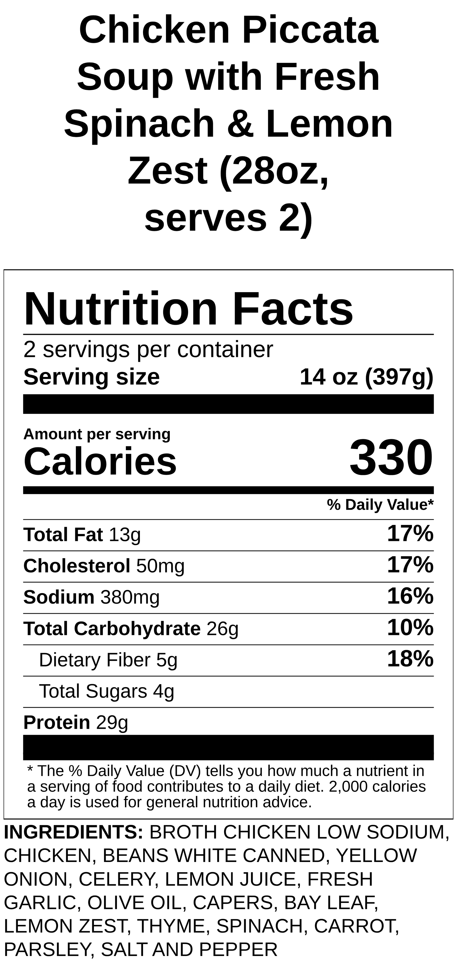 Chicken Piccata Soup with Fresh Spinach & Lemon Zest (28oz, serves 2)
