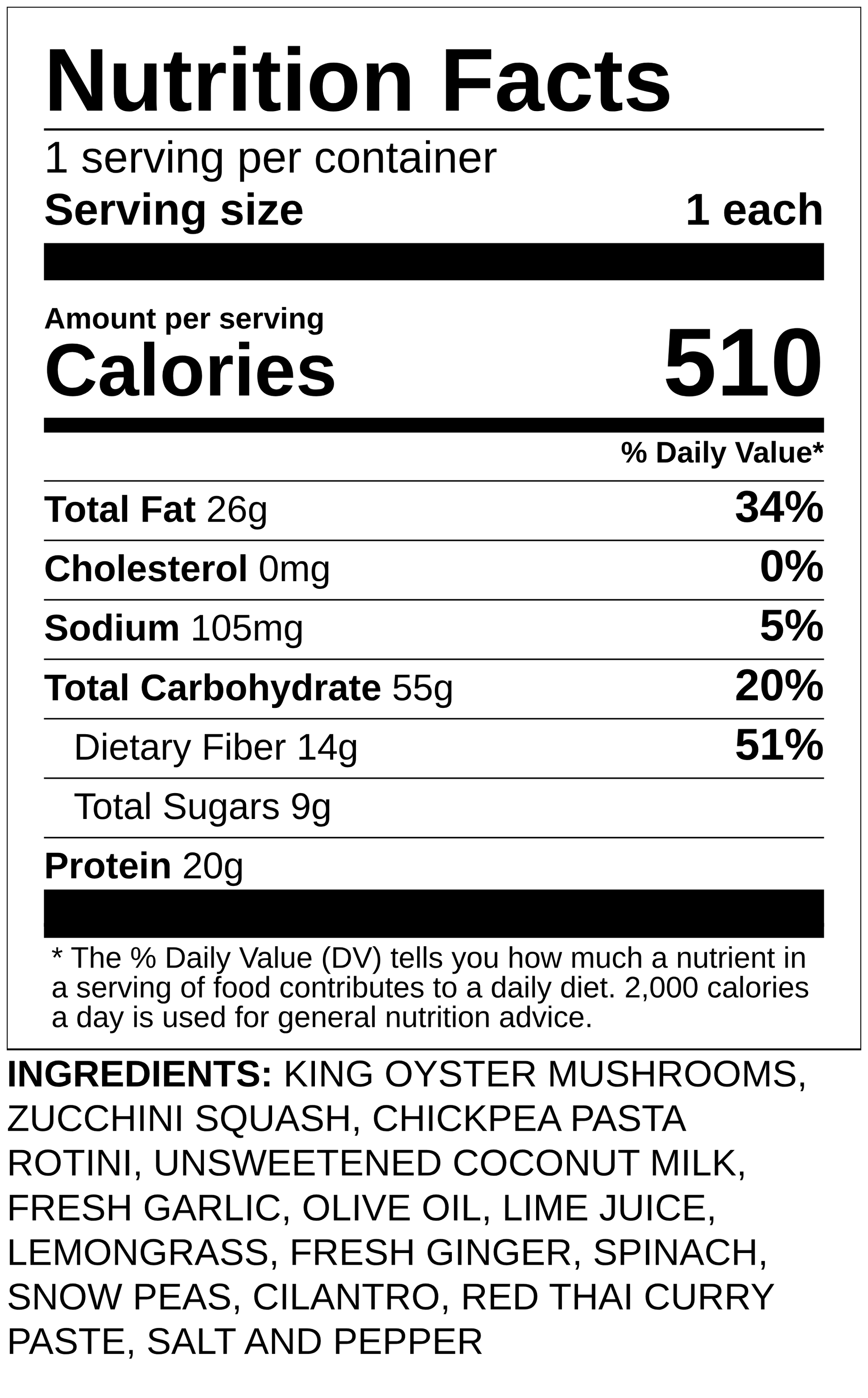 Vegan: Coconut Lemongrass King Oyster Mushrooms with Snow Peas & Chickpea Pasta