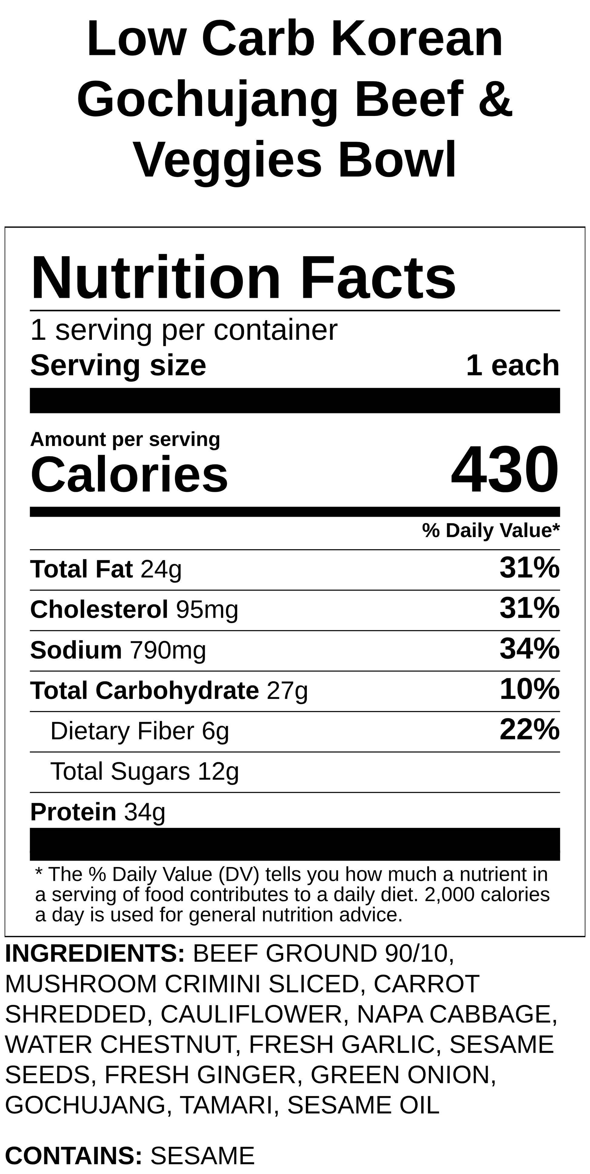 Extra Protein: Additional grass-fed Korean beef.