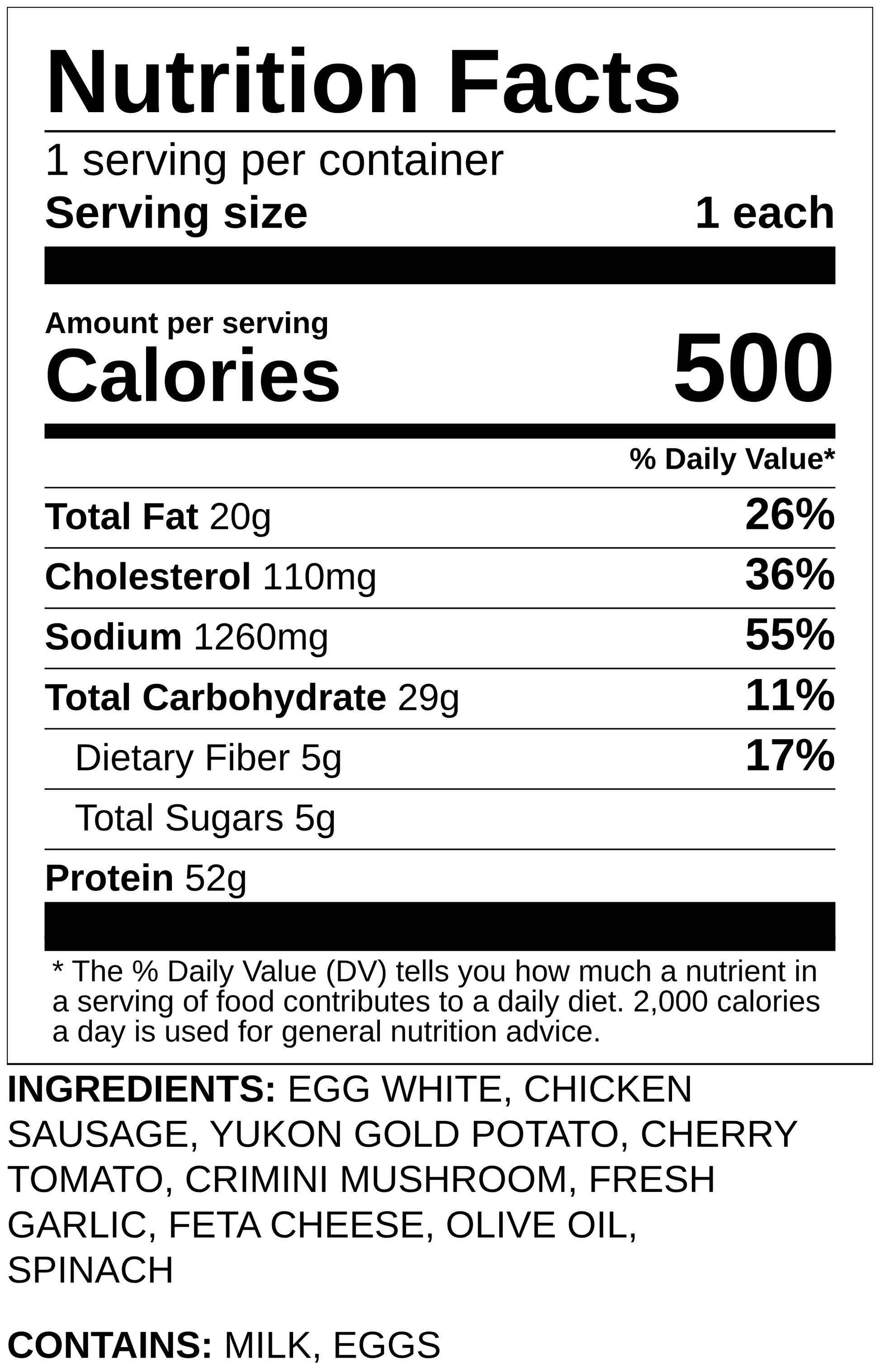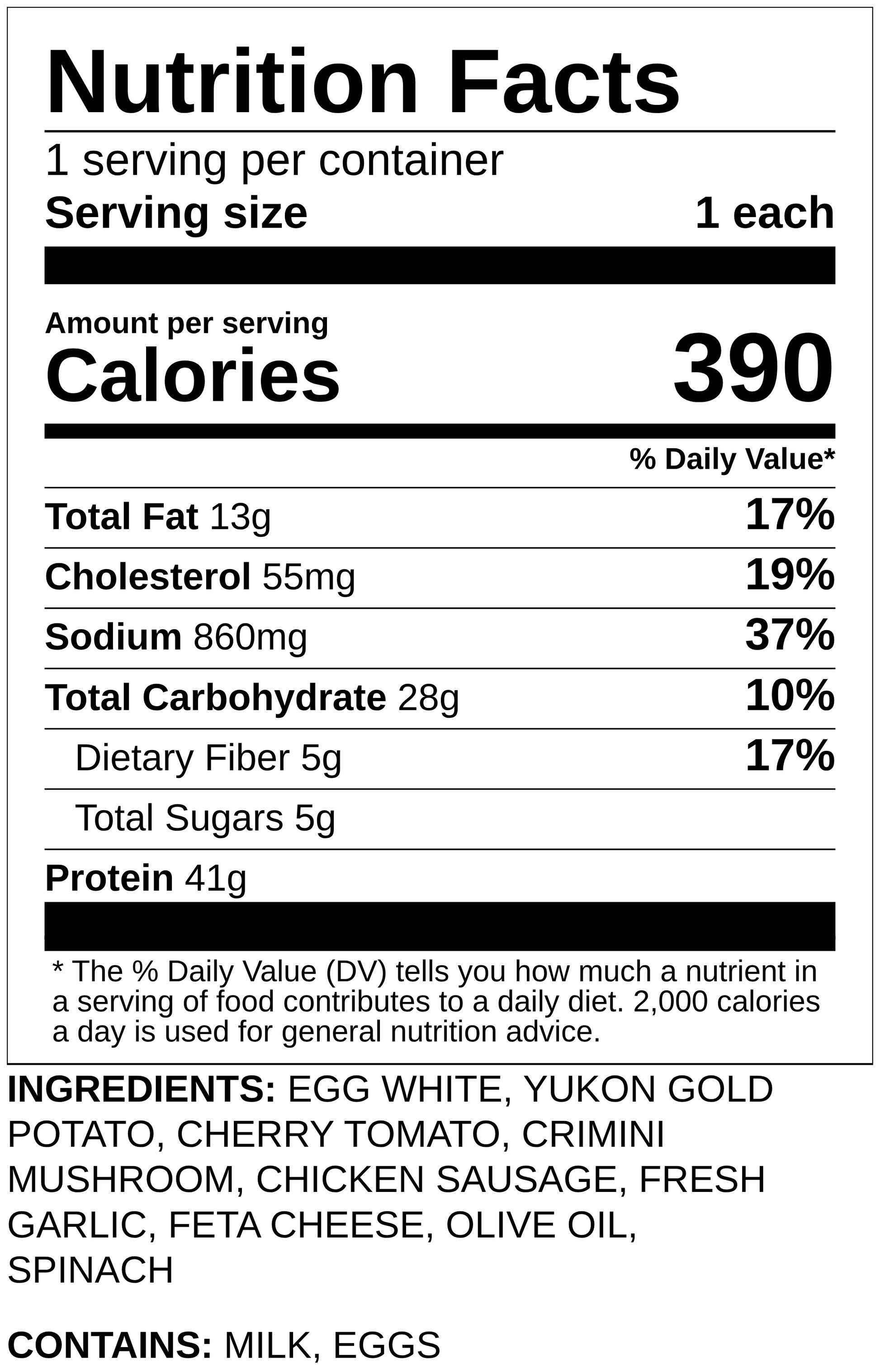 Spinach & Mushroom Egg White Frittata with Chicken Sausage